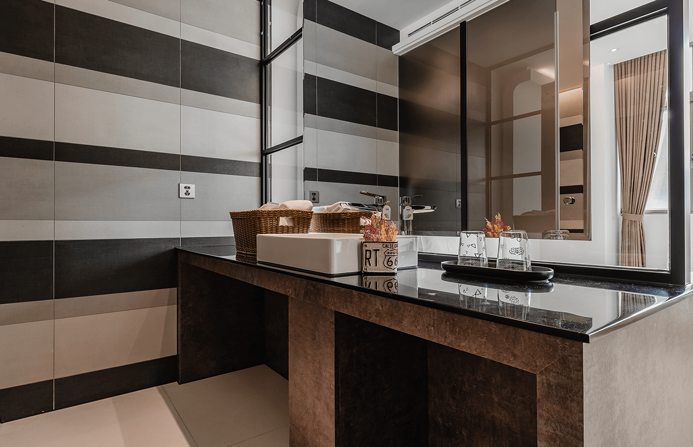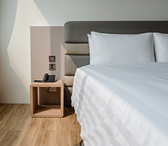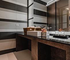 客房空間寬敞明亮,高樓層窗景即可一覽知名景點-台北101大樓。每房配備48吋液晶螢幕、浴缸、精選咖啡與經典茶包,早晨讓您以一杯濃郁的咖啡香開啟完美的一天。